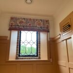 The Swedish style blind is very simple, using a contrasting backing fabric. It is hand rolled and tied in place. It works very well with the ever-popular vintage fabrics.