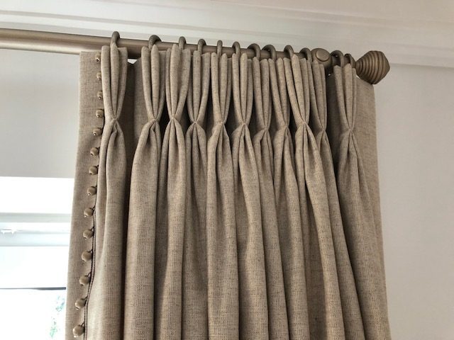 If you’re not covering the heading of your curtains with a pelmet, or swags and tails, it will be in full view all the time; so choosing the right heading is very important for the overall look. Pinch pleat headings are a traditional style of heading that work in virtually any setting. The pleats are at equal measured points and formed with double or triple folds and secured by hand stitching. This gives a very good structure to the curtains so they will hang far more elegantly.