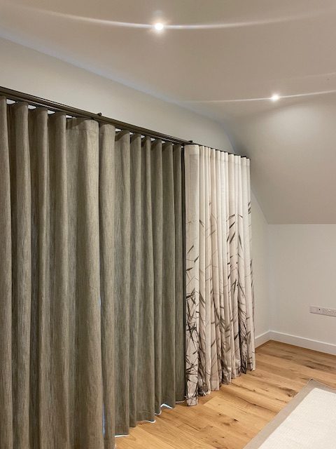 Interlining your curtains gives that extra plumpness to the pleats and folds, as well as additional warmth. When dressed back in tie backs you can really see the beauty of your new curtains even when they are not drawn. contrasting thread, buttons or decorative embellishment can be added to the pleats to give your curtains stunning detail.