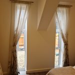 Tape headed curtains are a quick, simple heading option. The tape forms a pencil pleat gathering and is used on many pre-packed curtains, as it is machined in place and gives the option to gather the cords to the required width. It is assumed that less fabric is used when a tape heading is applied, as you can draw the cords looser than suggested- enabling you to fill the width of the window with less fabric. However to get the best appearance you should have the tape cords drawn to the maker’s instructions to form a tight regular pencil pleat.