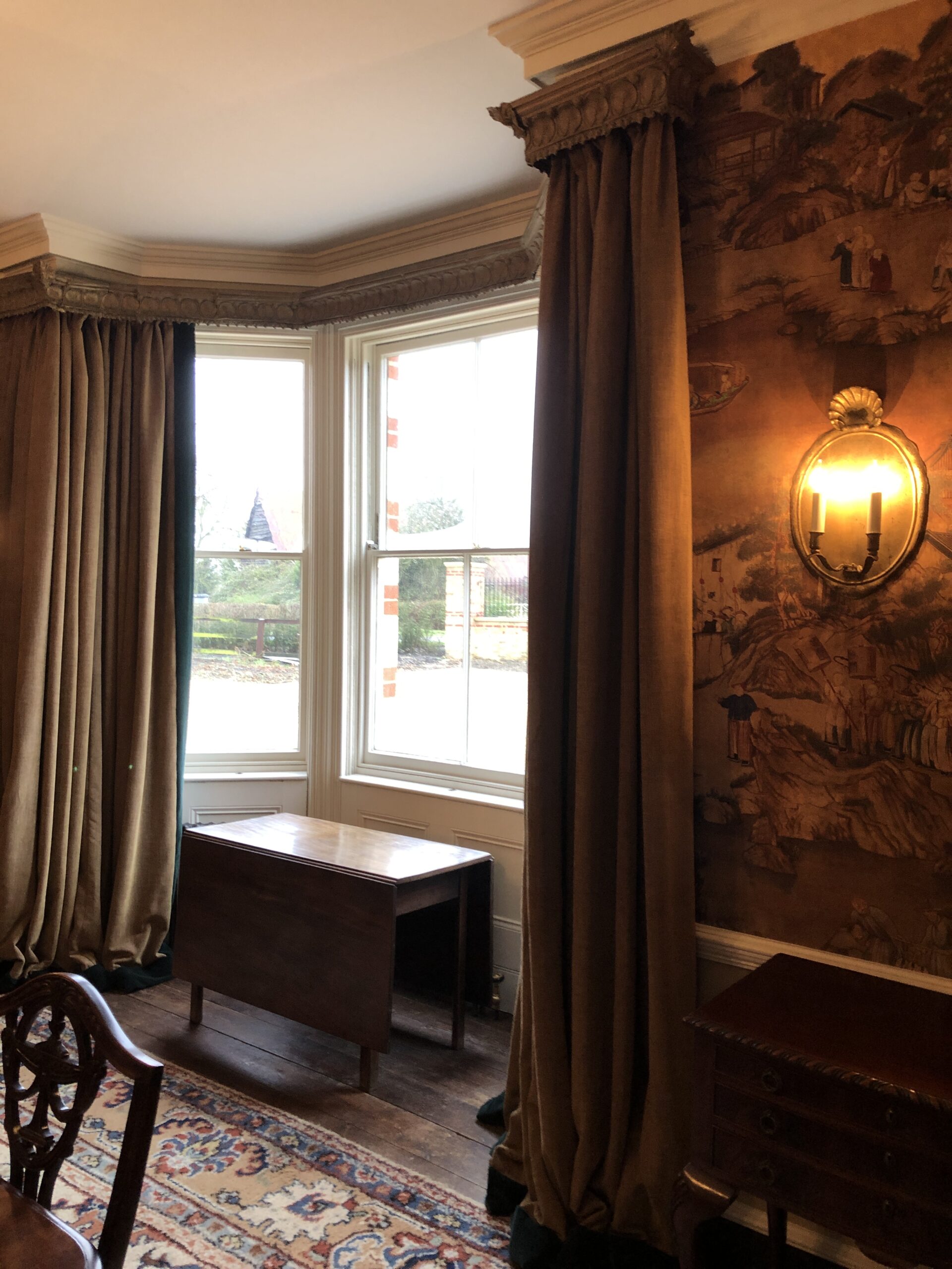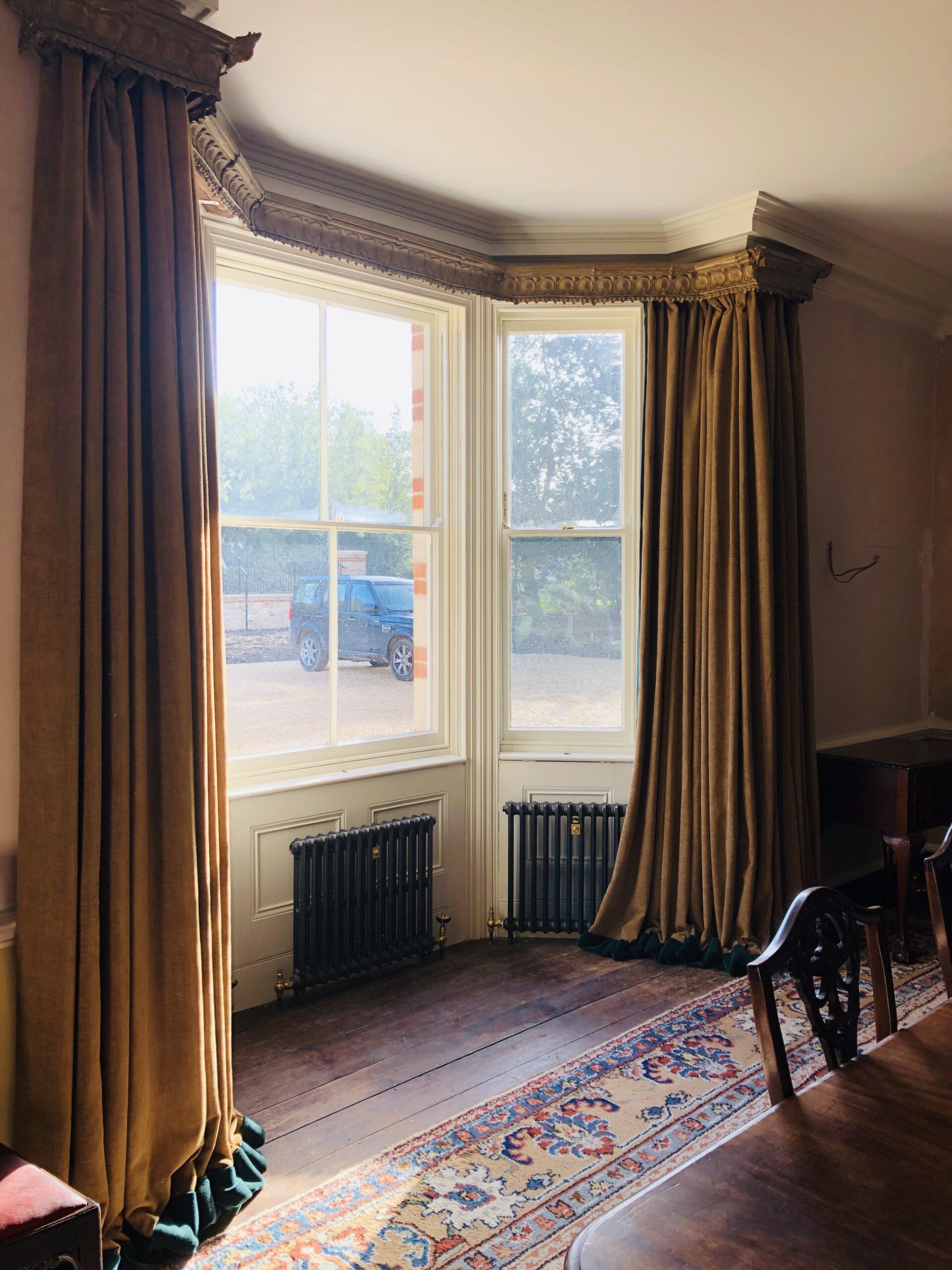 Interlining your curtains gives that extra plumpness to the pleats and folds, as well as additional warmth. When dressed back in tie backs you can really see the beauty of your new curtains even when they are not drawn. contrasting thread, buttons or decorative embellishment can be added to the pleats to give your curtains stunning detail.